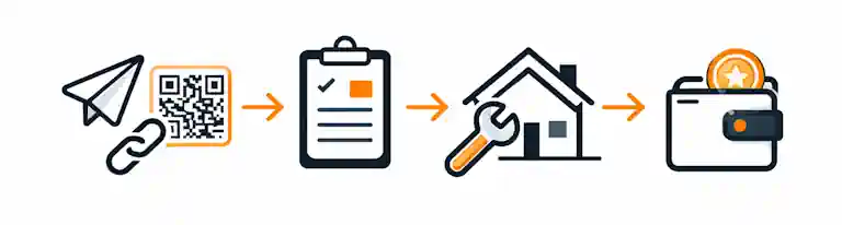 Share your personal link or QR code. We handle the client communication, diagnostics, options, and the job.Your contact gets a promo discount — you earn a partner reward.